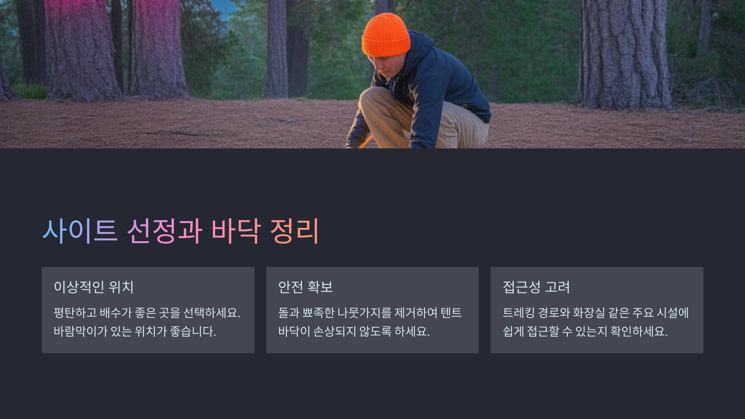 사이트 선정과 바닥 정리 🌲 설치하기 좋은 사이트 조건 비교표