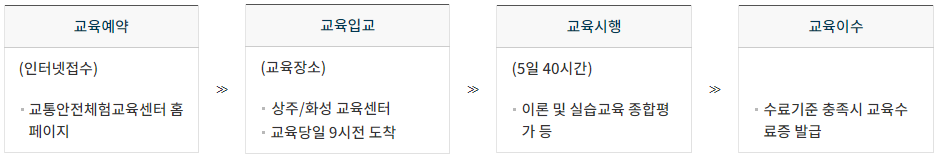 ★ 교육을 이수하고, 1년 이내에 개인택시 운송사업 면허를 양수하여야 하며, 교육이수 후 1년이 경과하고 개인택시운송사업 면허를 양수하려는 경우에는 다시 교육을 이수하여야 합니다.▶ 교육과정