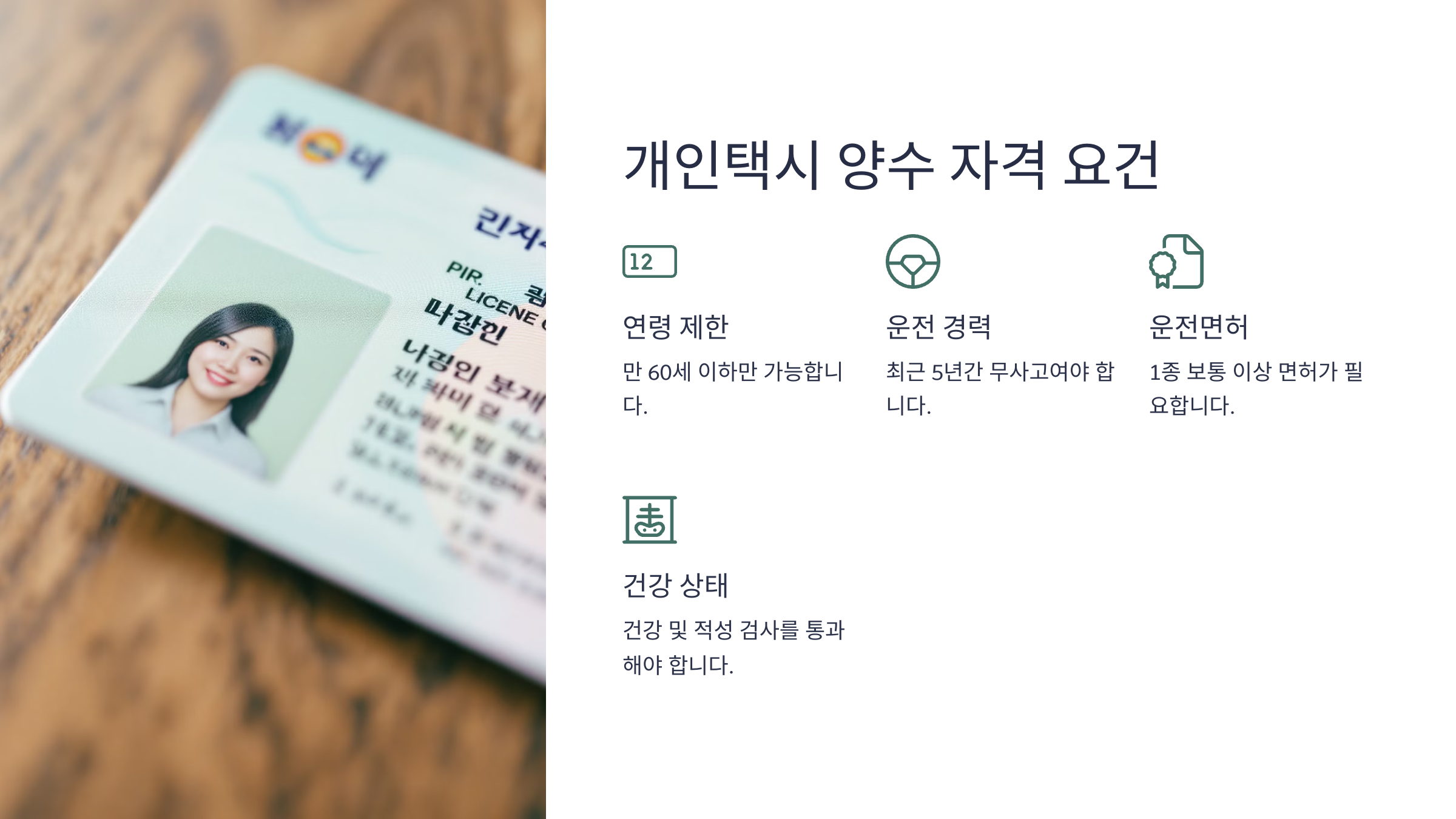 개인택시 기사가 되기 위해서는 반드시 택시 면허를 양수해야 합니다. 개인택시 양수란 기존 개인택시 사업자로부터 운송 사업권을 양도받는 과정을 말해요. 그러나 아무나 개인택시 면허를 양수할 수 있는 것은 아니며, 자격 요건을 충족해야만 가능합니다.