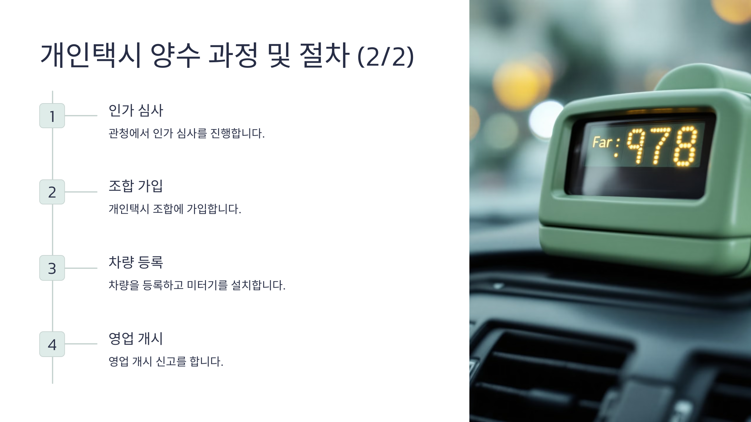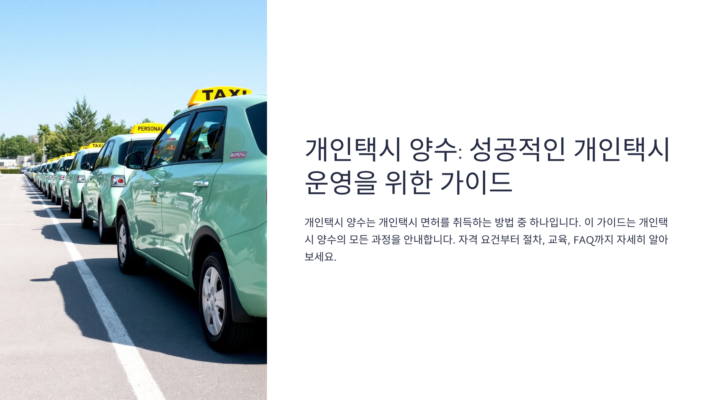 오늘은 개인택시 양수 조건, 절차, 그리고 교육 과정까지 자세히 알아볼게요! 😉