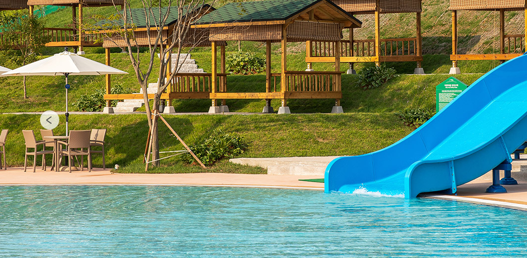 상하농원의 야외 수영장은 자연과 함께하는 여름휴가를 컨셉으로 설계되었습니다. 투숙객뿐만 아니라 방문객도 이용할 수 있으며, 대형 풀과 미끄럼틀이 설치된 유아 풀을 갖추고 있어 가족들이 안전하게 물놀이를 즐길 수 있습니다. 또한, 품격 있고 이국적인 정취를 느낄 수 있는 시설입니다.