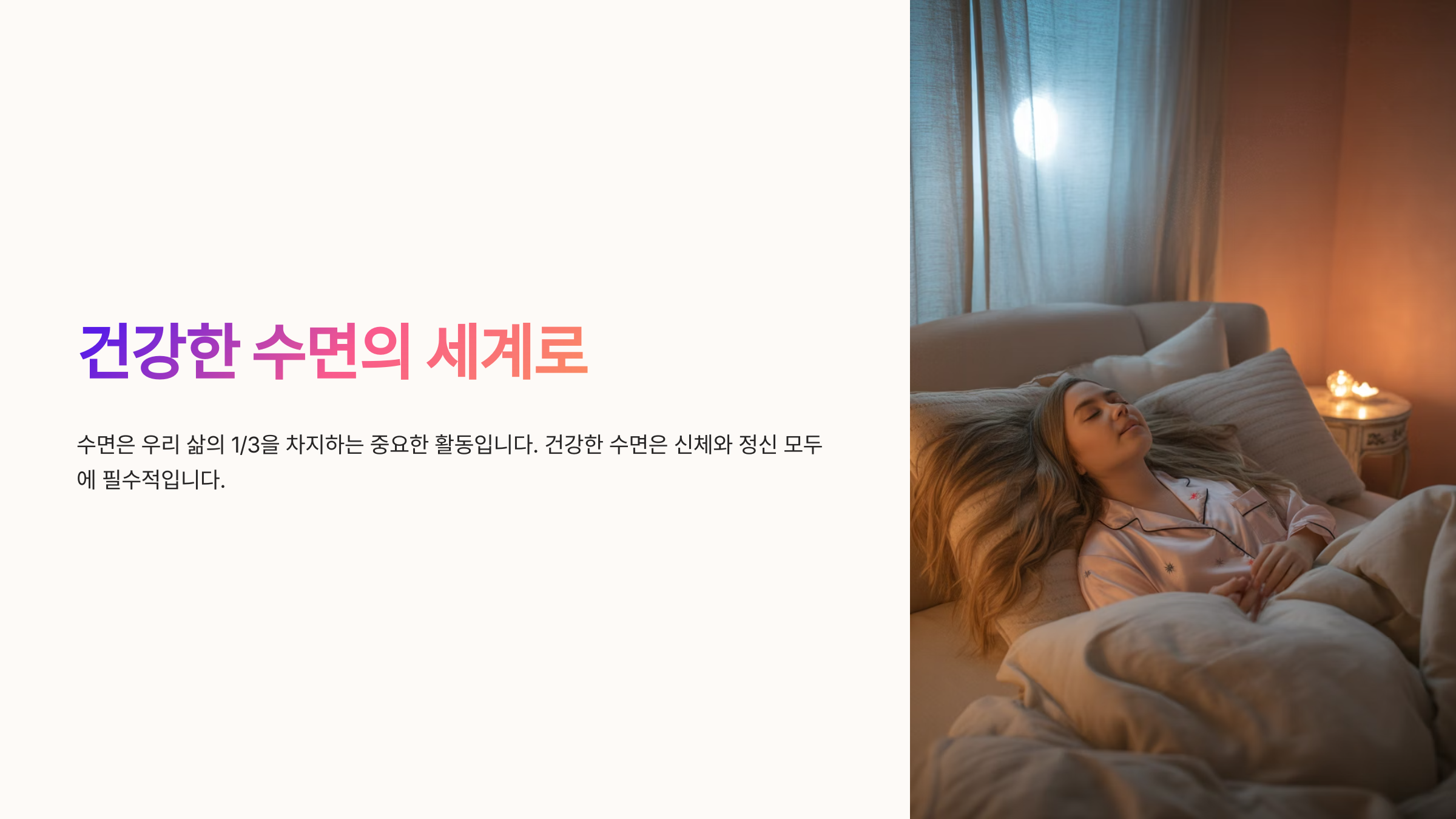 내가 생각했을 때, 우리가 잠을 단순히 하루 마무리로만 생각하는 건 큰 오해 같아요. 수면은 낮 동안 우리가 쓴 에너지를 되돌리는 재충전 시간이자, 두뇌와 감정을 정리하는 시간이에요. 그래서 수면을 소홀히 하면 신체뿐 아니라 정신 건강에도 영향을 미쳐요.