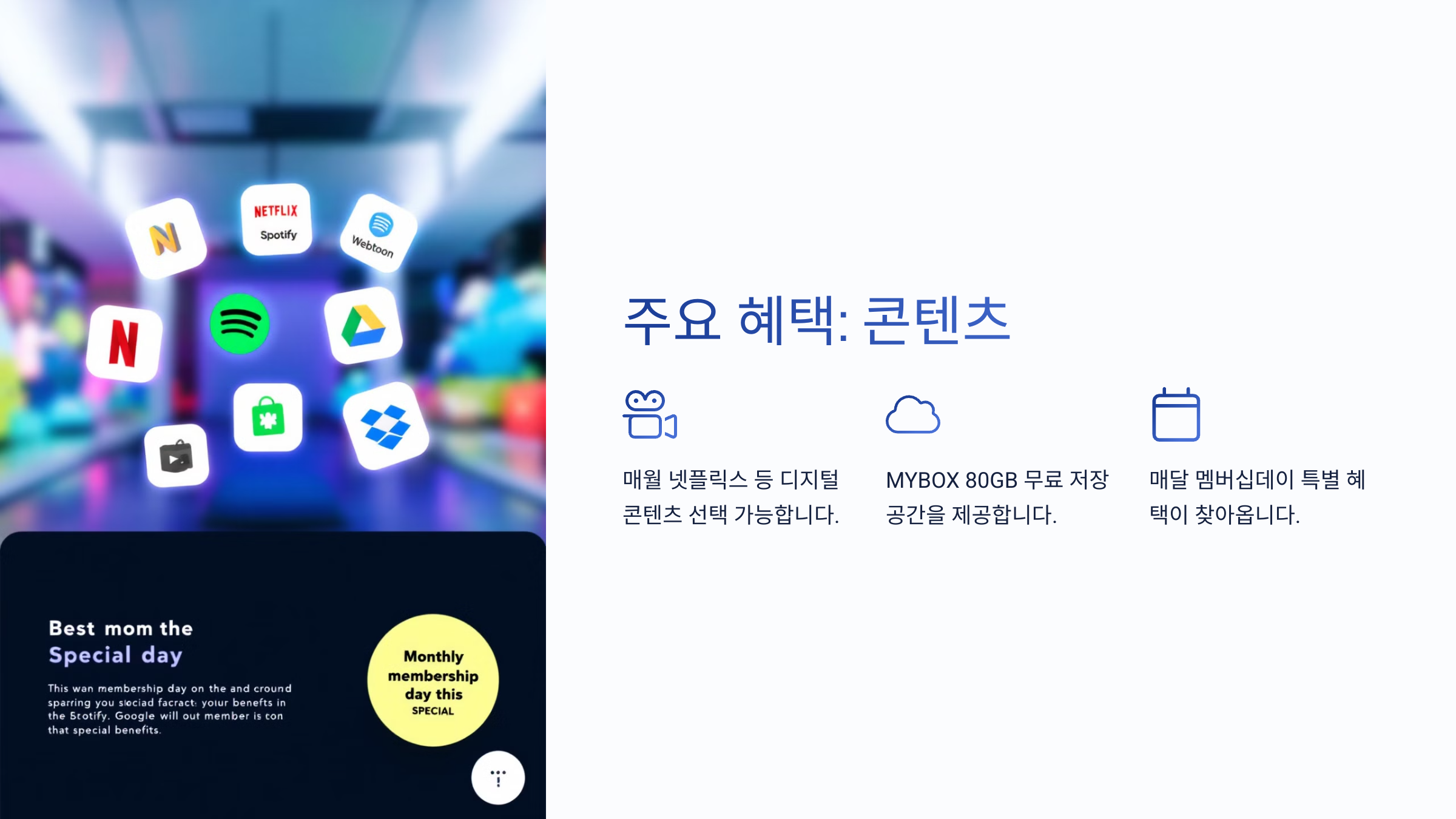 A2. 쇼핑 할인, 웹툰/시리즈 무료 혜택, 음악 스트리밍 서비스 할인 등 다양한 혜택을 제공받을 수 있어요.