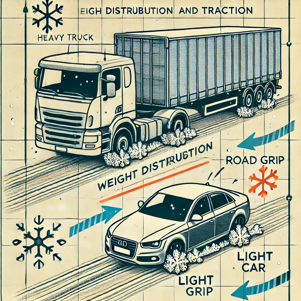 그럼 이제 대형 차량이 눈길에서 덜 미끄러지는 이유를 하나씩 자세히 살펴볼게요.