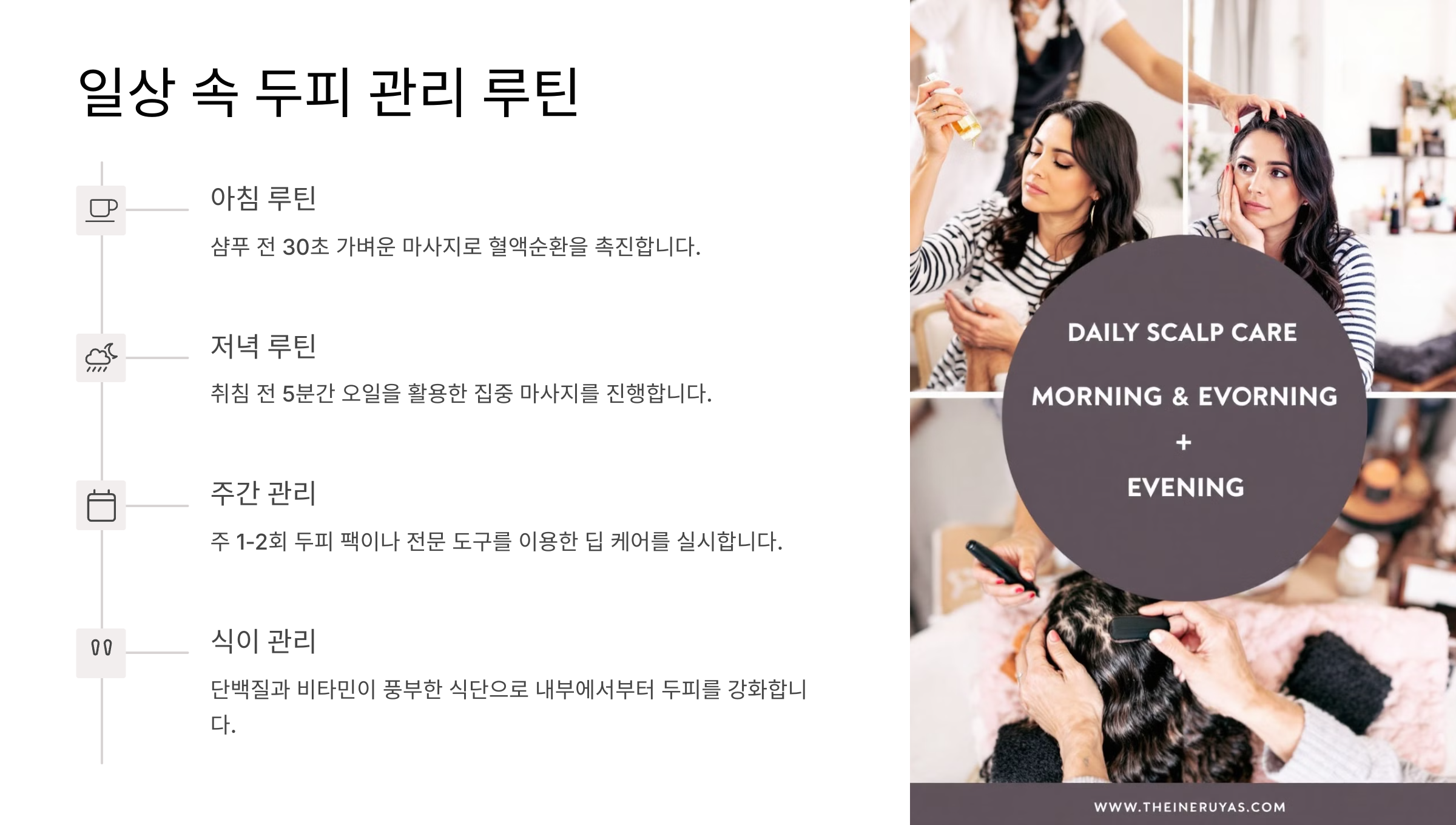 이런 루틴을 꾸준히 반복하다 보면 어느 순간부터 머리카락이 덜 빠지고, 두피가 더 산뜻해지는 걸 느낄 수 있어요. 오늘부터 바로 실천해보면 어때요? 작지만 확실한 변화가 찾아올 거예요! 🧼