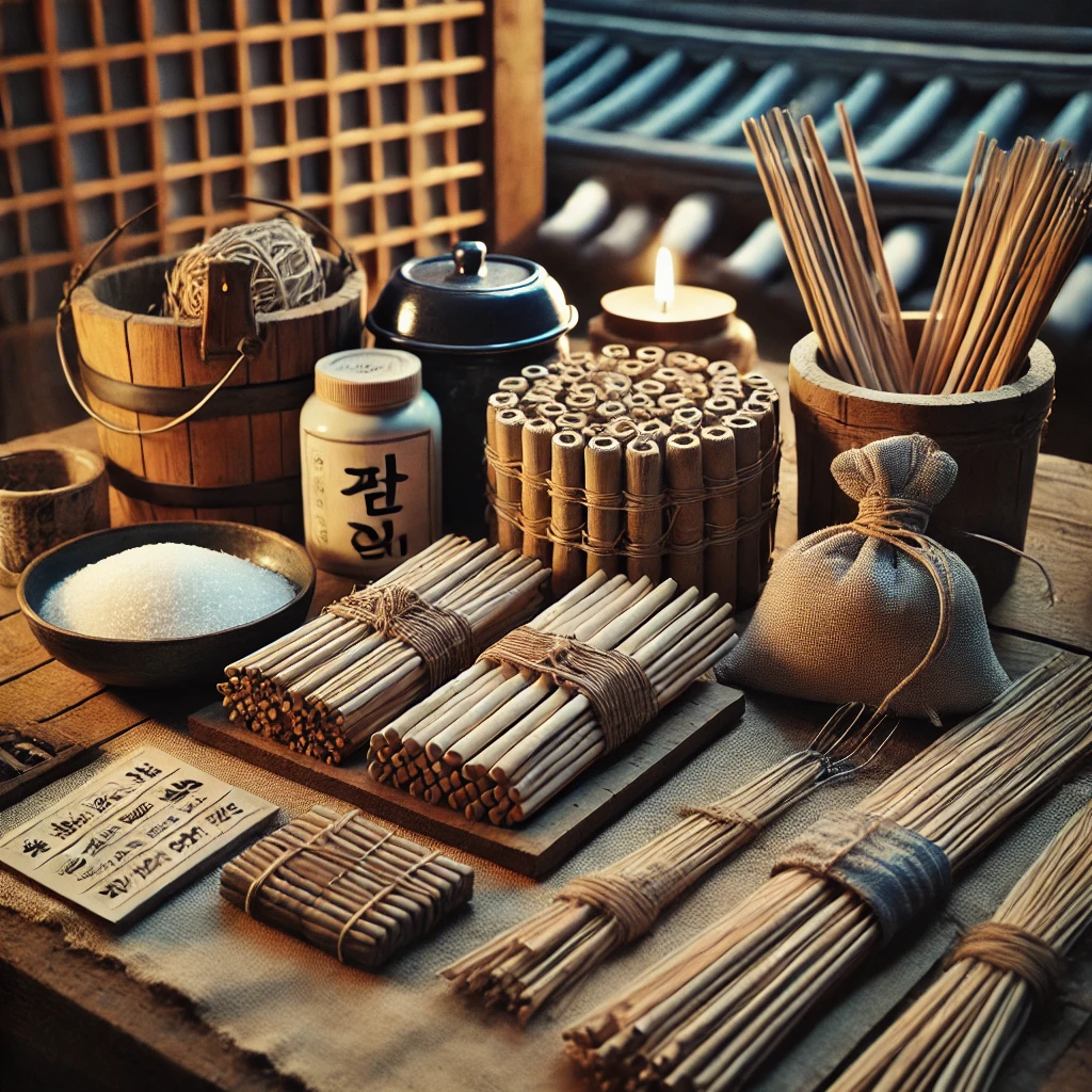 - 숯과 소금: 숯과 소금은 대나무와 한지에 불을 붙이는 데 필수적으로 사용됩니다. 숯은 불이 잘 붙도록 도와주며, 불꽃의 색과 질감을 더욱 선명하게 만들어 줍니다.