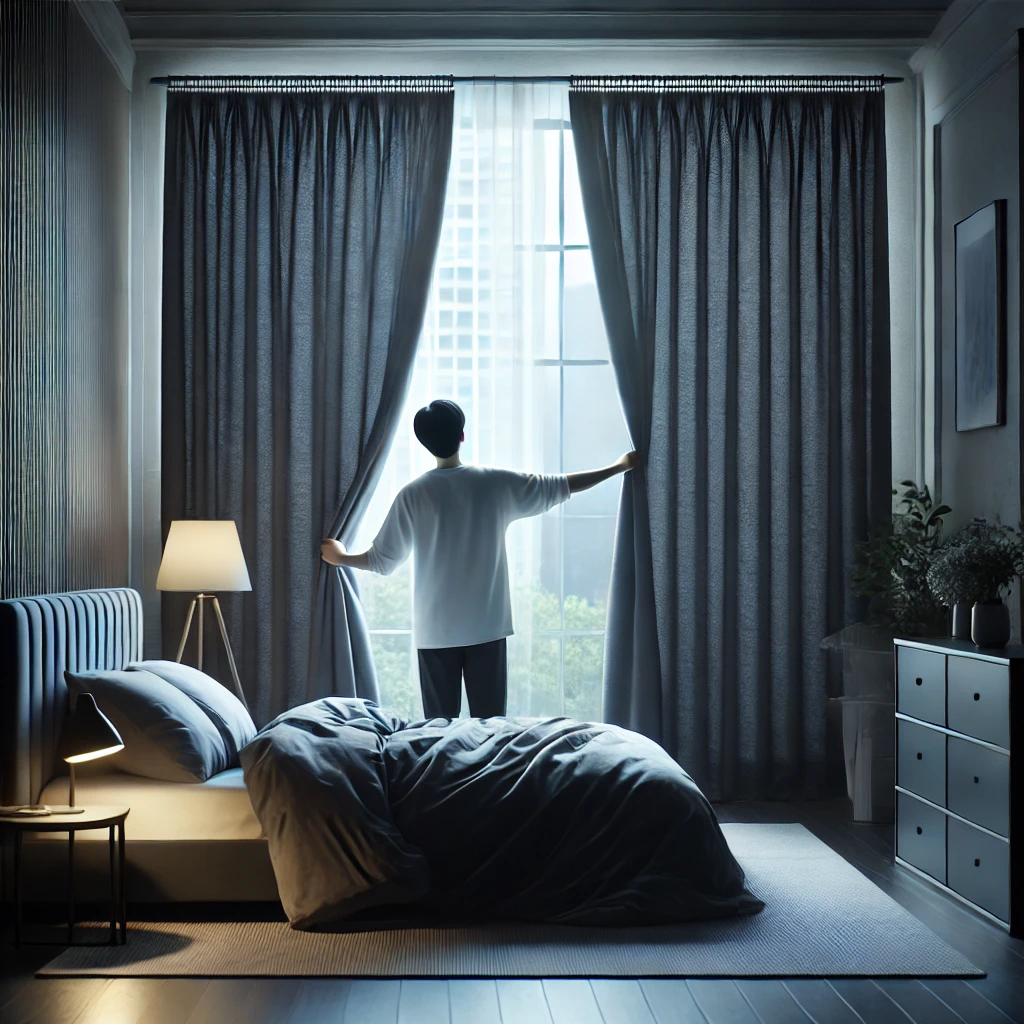 - 암막 커튼 사용: 방 안에 들어오는 외부 빛을 차단하기 위해 암막 커튼을 사용하여 어두운 환경을 만듭니다.