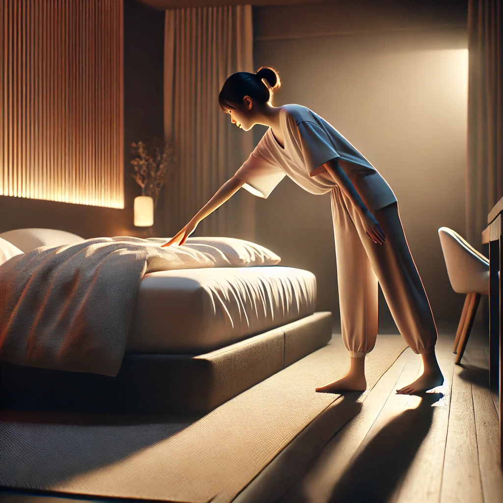 - 가벼운 스트레칭: 자기 전 목, 어깨, 팔, 다리 등을 가볍게 스트레칭하면 근육이 이완되고, 편안한 상태에서 잠들기 쉽습니다.