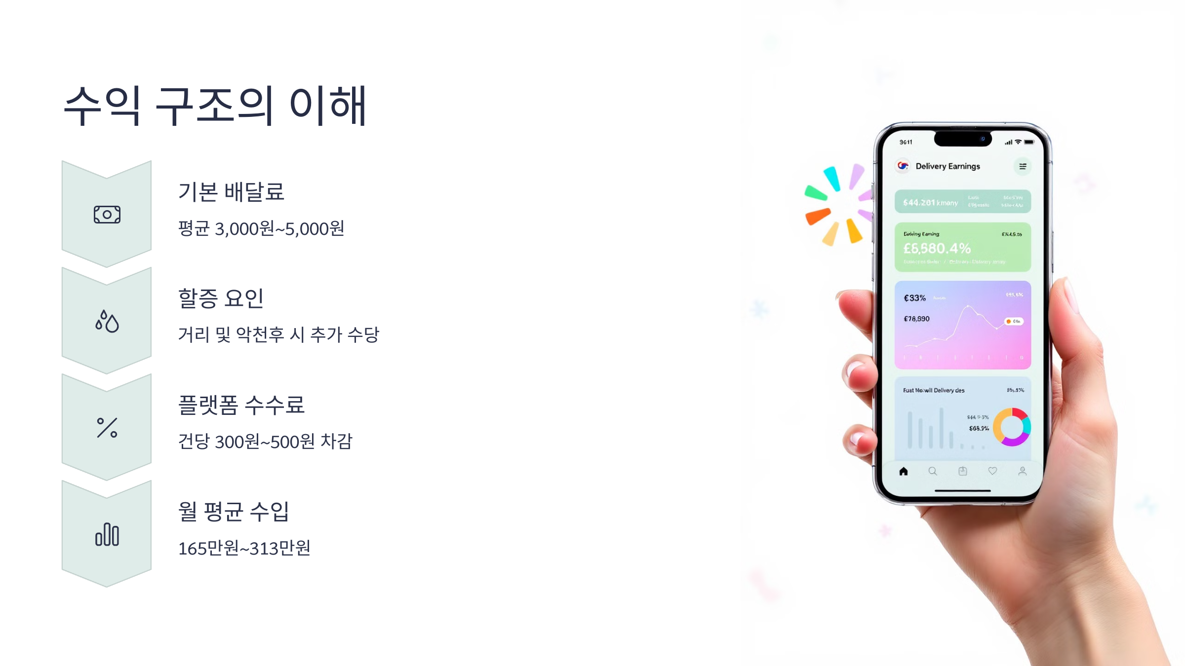 하지만 단순히 '배달 한 건 = 수익'이라고 생각하면 안 돼요. 배달 요청을 기다리는 시간, 음식 수령 대기 시간, 이동 거리 등을 모두 고려해야 해요. 특히 도심은 수익률이 높지만 차량 정체가 많고, 시골은 건당 단가가 높아도 콜 수 자체가 적어서 비효율적인 경우가 많아요.