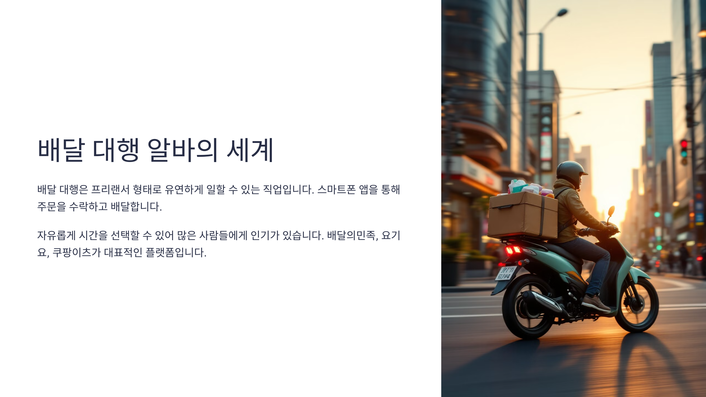 그럼 본격적으로 배달 대행 알바에 대해 하나씩 살펴보자구요! 🚀