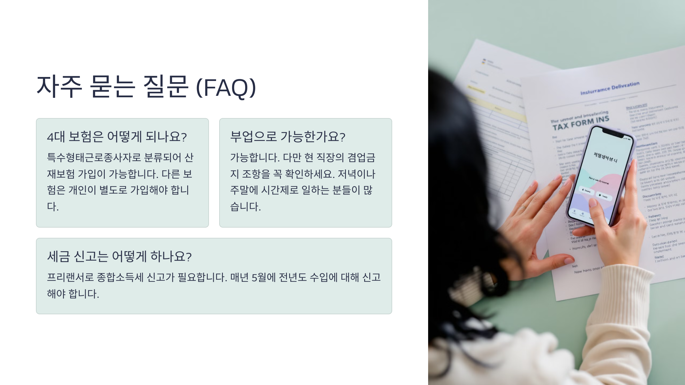 A4. 유상 운송 보험 또는 실손보험이 필수예요. 사고 발생 시 보상 여부에 큰 영향을 줘요.