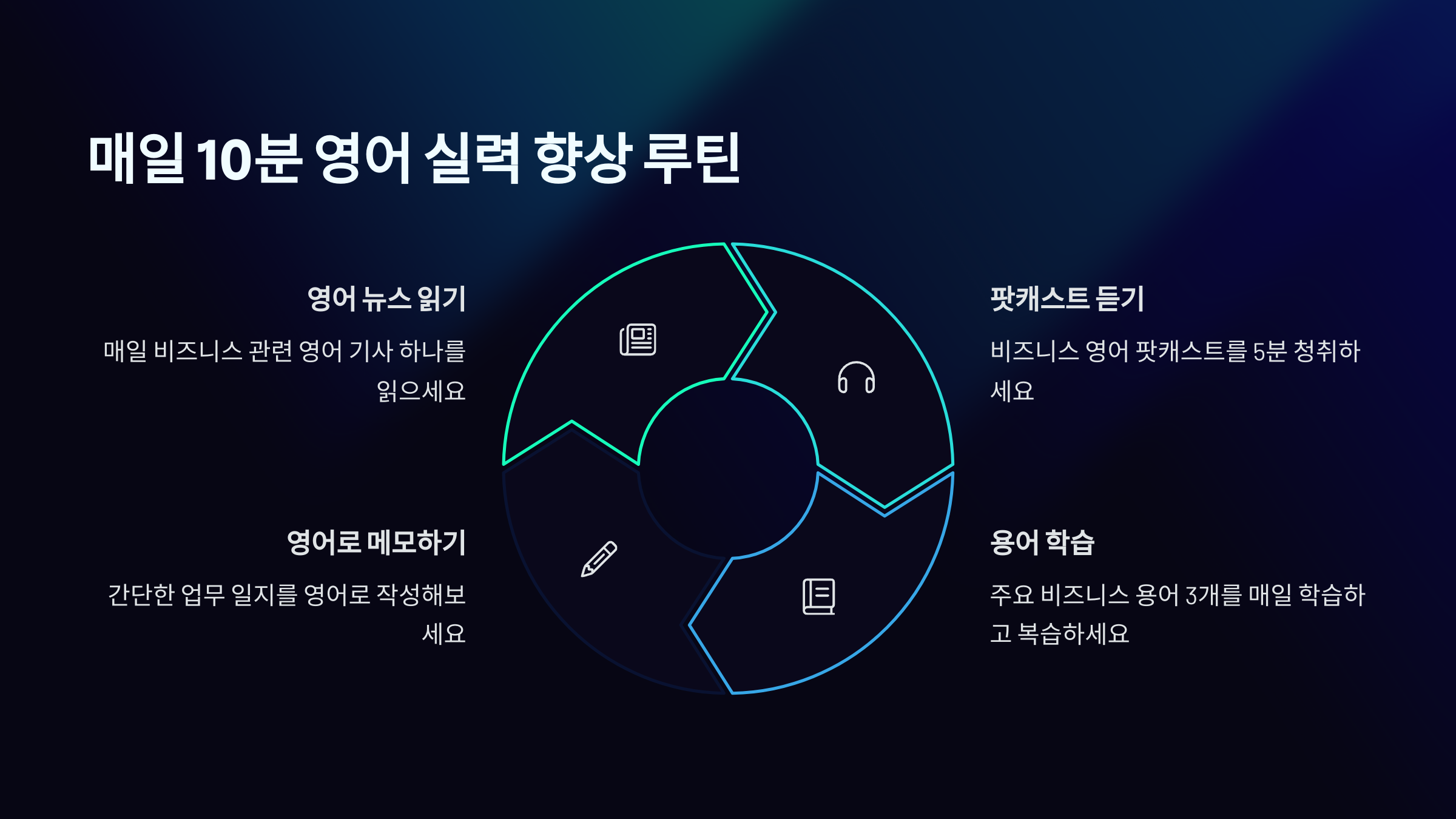 이 루틴을 2~3달만 반복하면, 확실히 실력이 달라져요! 내가 생각했을 때, 비즈니스 영어는 하루 10분 투자로도 습관화할 수 있어요 🔥