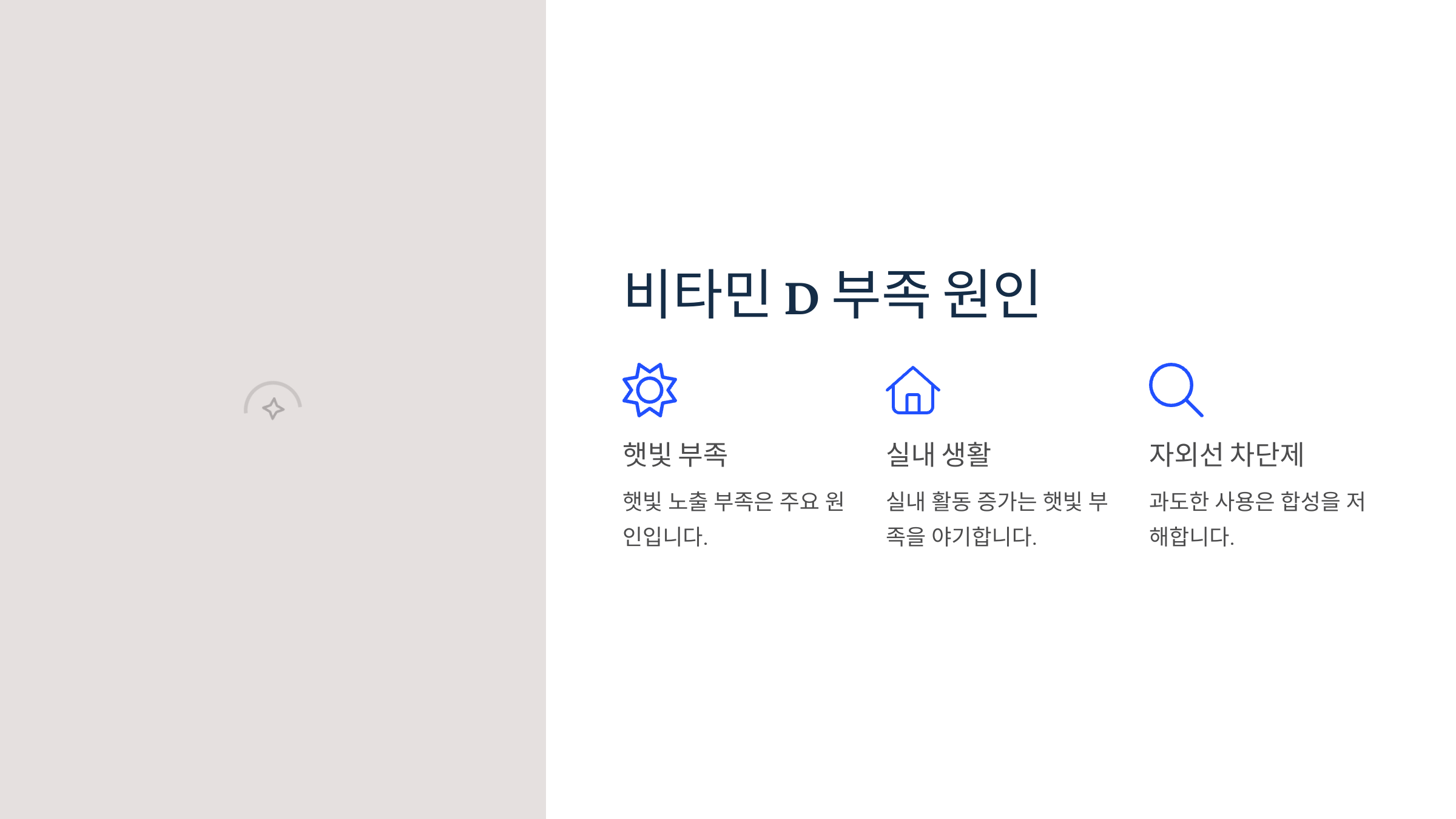 ✅ 햇빛 노출 부족 – 실내 활동 증가로 자외선 부족