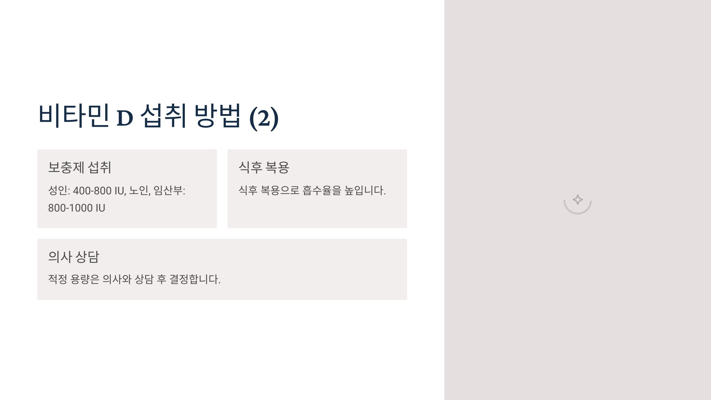 Q3. 비타민 D 보충제는 언제 먹는 게 좋나요?