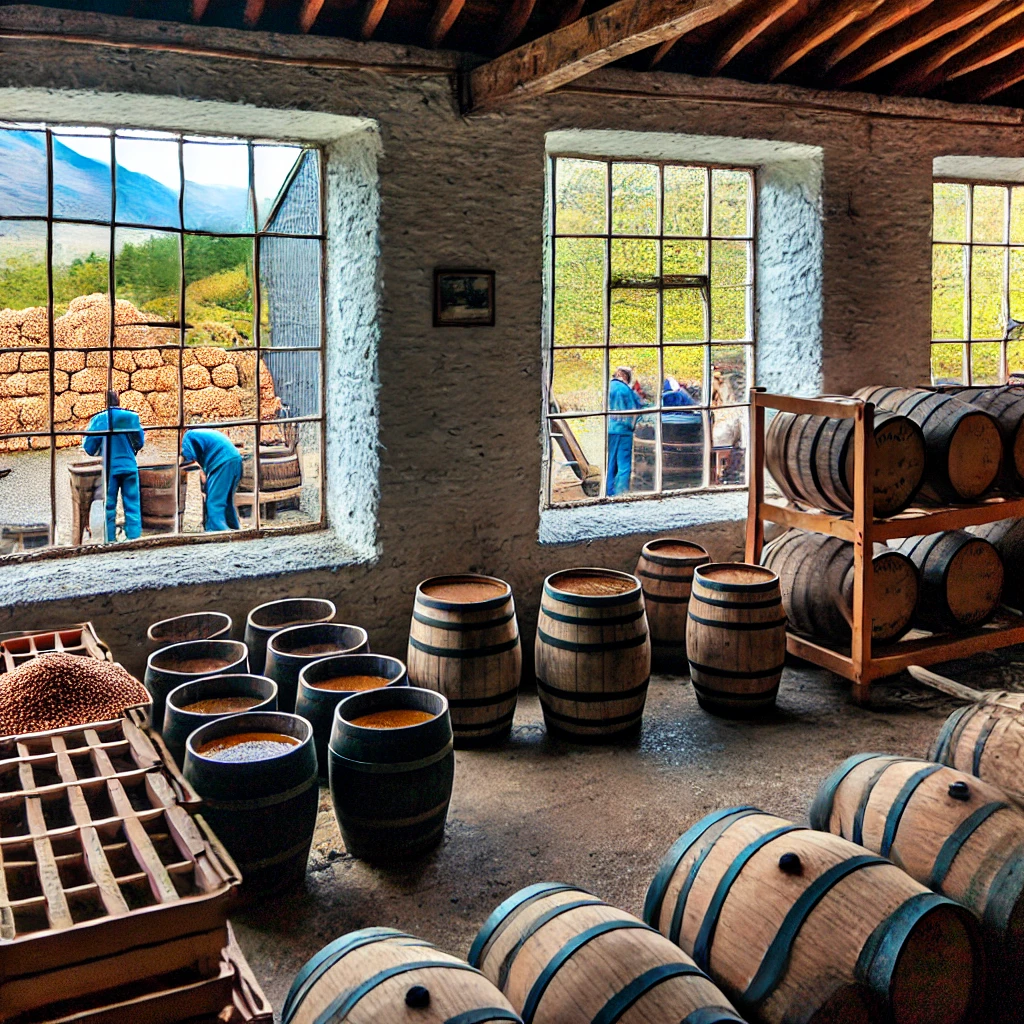 이 과정은 맥아를 생성하여 발효에 필요한 당분을 만들어 내는 중요한 단계입니다. 그런 다음, 맥아를 물과 혼합하여 발효시켜 알코올을 생성합니다. 발효 과정에서는 효모가 당분을 알코올로 전환시키며, 아이리시 위스키의 기초가 형성됩니다.