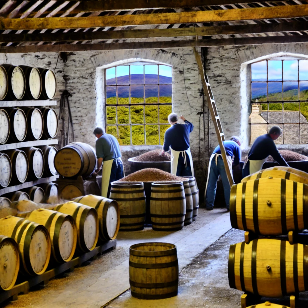 아이리시 위스키의 제조 과정은 크게 다섯 단계로 이루어집니다: 맥아 제조, 발효, 증류, 숙성, 병입. 먼저, 보리를 물에 불려 발아시킨 후 건조시켜 맥아를 만듭니다.
