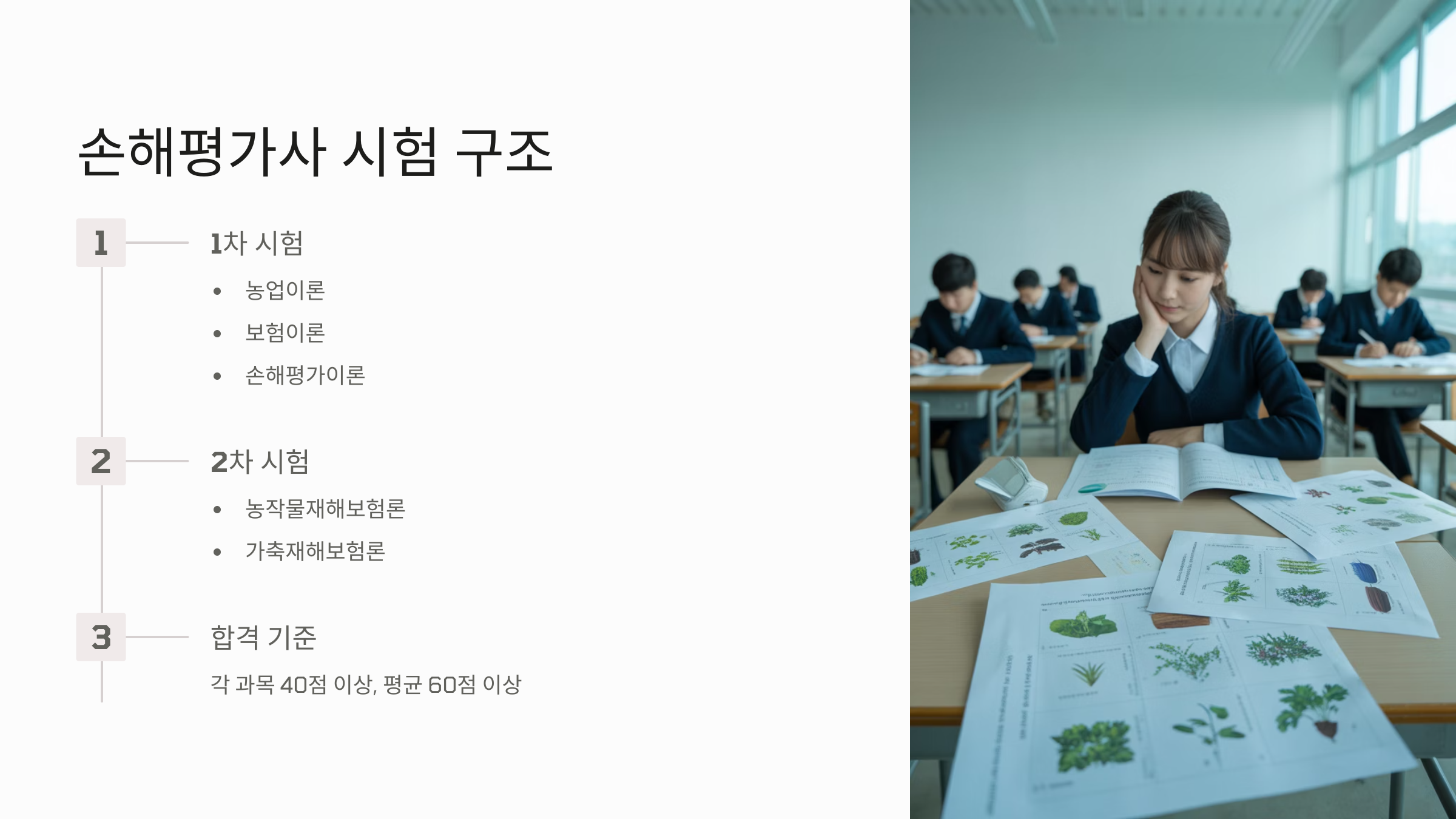 1차 시험 과목은 '농업보험 일반이론', '자연재해 및 농작물 일반', '농작물 및 축산물 재해보험 관련 법규'로 구성돼 있어요. 이 중 법규는 암기력이 중요하지만, 일반이론은 기본 개념을 정확히 이해하고 있어야 풀 수 있는 응용 문제가 많아요.