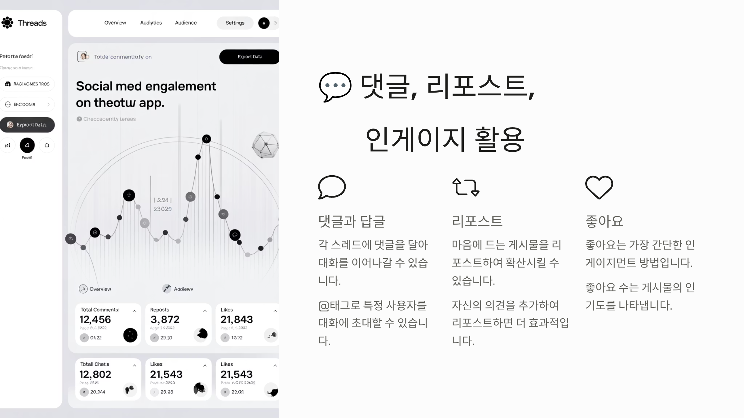 댓글, 리포스트, 인게이지 활용 Thread에서 반응을 얻는 가장 확실한 방법은 ‘먼저 반응하기’예요. 누군가의 글에 좋아요를 누르거나 댓글을 남기면, 그 사람도 내 글을 방문할 확률이 높아져요. 일종의 교류 방식이에요.