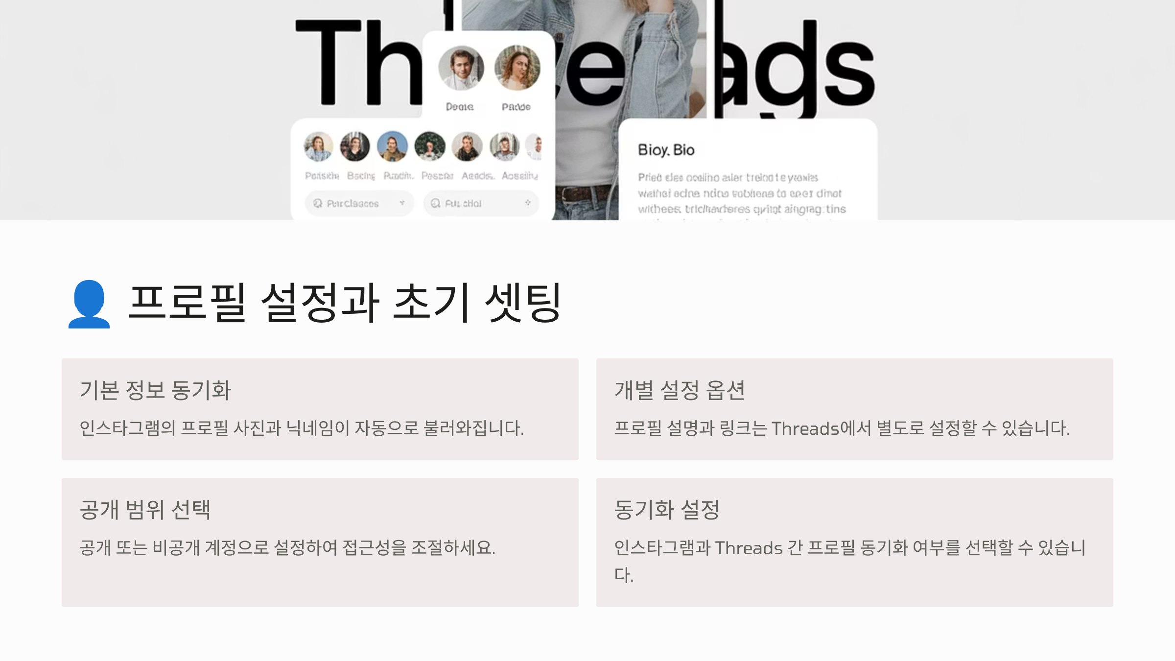 프로필 설정과 초기 셋팅 Thread에 가입한 직후 가장 먼저 해야 할 일은 바로 프로필 꾸미기예요. 인스타그램과 연동되기 때문에 프로필 사진, 이름, 소개 문구가 기본으로 복사되긴 하지만, 조금만 수정해도 훨씬 인상적인 계정을 만들 수 있어요.