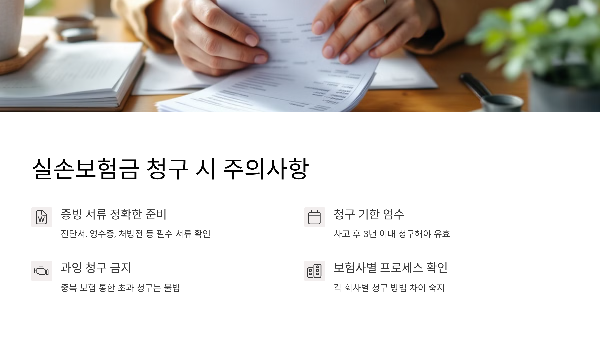 그래서 실손 중복 가입 상태에서는 반드시 보험금 청구를 '한 곳'에만 진행하는 게 좋아요. 그리고 다른 보험이 있음을 보험사에 알려줘야 해요. 요즘은 보험사들이 실손보험 통합조회 시스템으로 서로 정보를 공유하고 있어서 숨기기도 힘들어요.