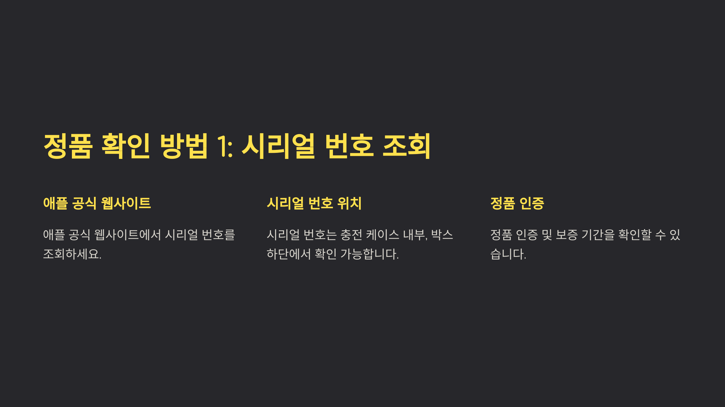 정품 확인 방법 1: 시리얼 번호 조회