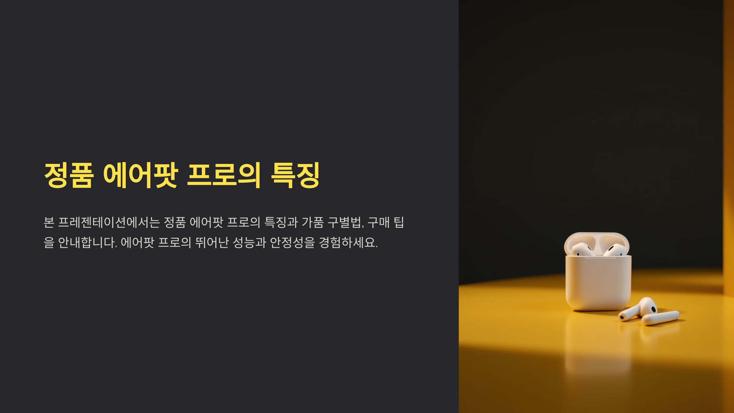 정품 에어팟 프로는 여러 가지 특징이 있어요. 첫 번째로 디자인이 매우 중요해요. 정품은 매끈한 디자인과 고급스러운 마감을 가지고 있어요. 이어폰 본체와 케이스의 마감이 깔끔하고, 이어폰의 노이즈 캔슬링 성능도 뛰어나죠. 또한, 통합 애플 생태계와의 호환성 덕분에 iPhone, iPad, MacBook 등 다양한 애플 제품과 원활하게 연결돼요.
