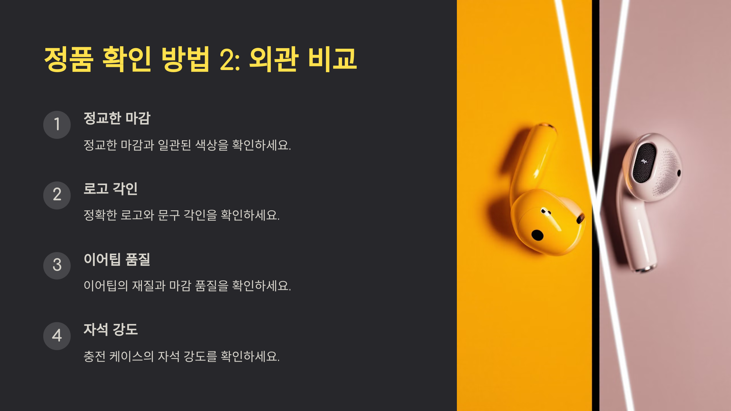 정품 확인 방법 2: 케이스와 이어폰의 외관 비교