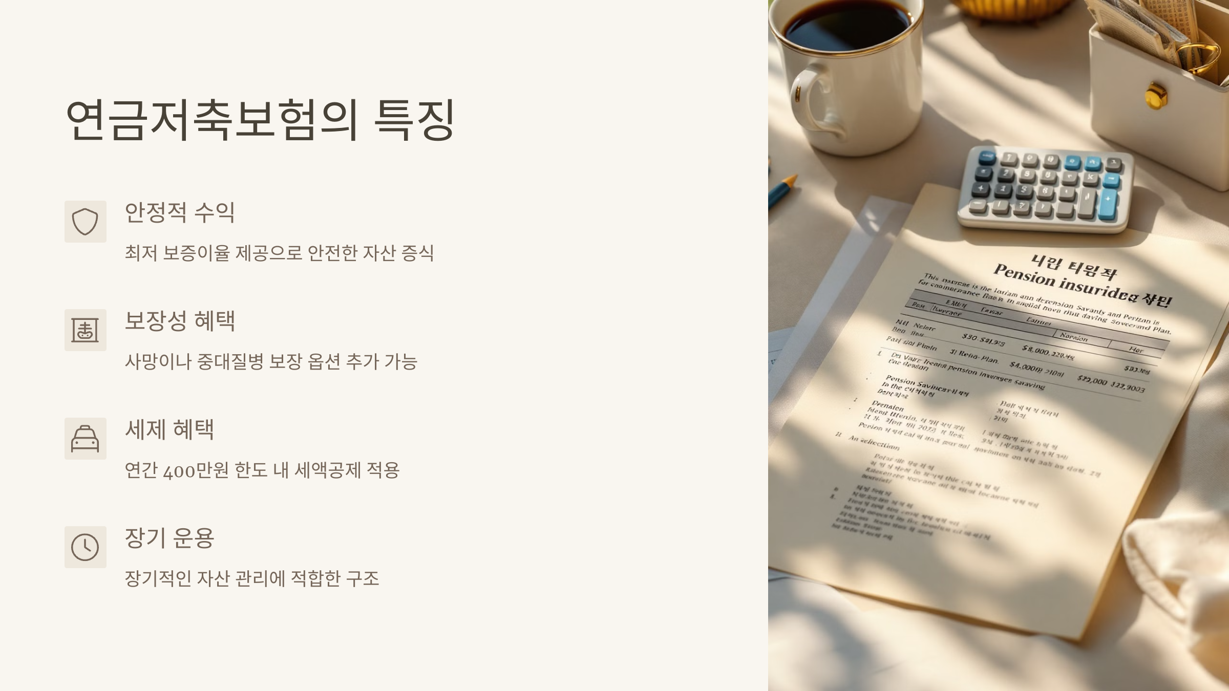 연금저축보험은 생명보험사나 손해보험사를 통해 가입할 수 있는 금융상품이에요. 가장 큰 특징은 안정성이에요. 보험사는 고객의 자산을 주로 채권 중심으로 운용하기 때문에 수익은 낮지만 손실 위험도 거의 없어요. 투자 성향이 보수적인 분들에게 적합한 선택이죠.