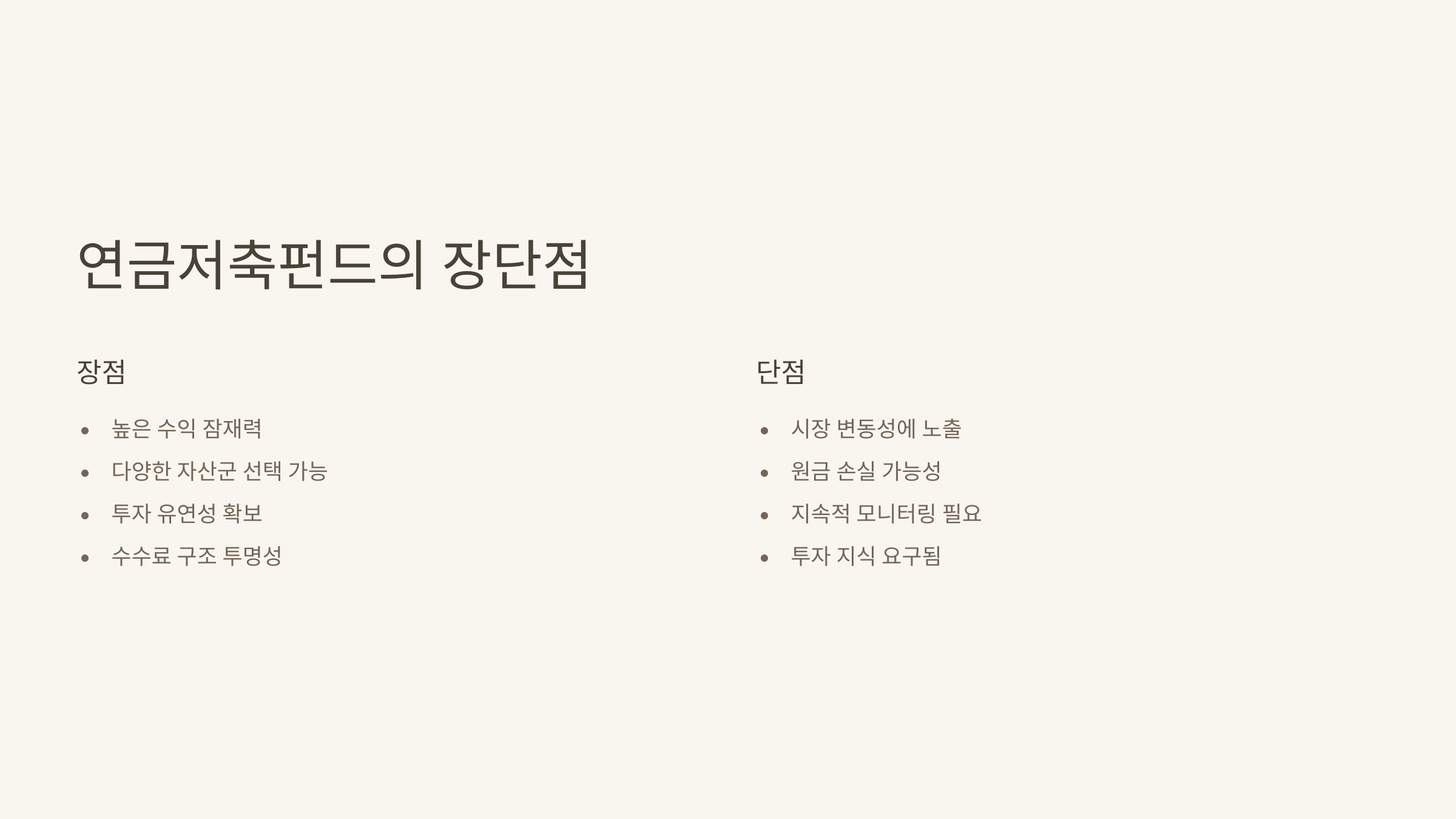 하지만 그만큼 리스크도 존재해요. 시장 상황에 따라 원금 손실이 발생할 수도 있고, 단기적으로는 큰 폭의 손익 변동을 겪을 수 있어요. 또한 증권사 수수료, 펀드 보수 등 다양한 비용 구조를 제대로 파악해야 실질 수익률을 정확히 알 수 있답니다.