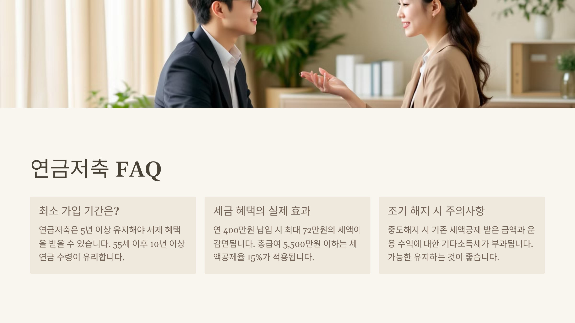 또한, 연금 수령 시점에도 세제 혜택이 있어요. 55세 이후 연금 형태로 수령할 경우, 연금소득세 3.3~5.5%로 저율 과세가 적용돼요. 만약 한 번에 인출하면 기타소득세 16.5%가 부과되므로, 연금 형태로 받는 게 유리해요.