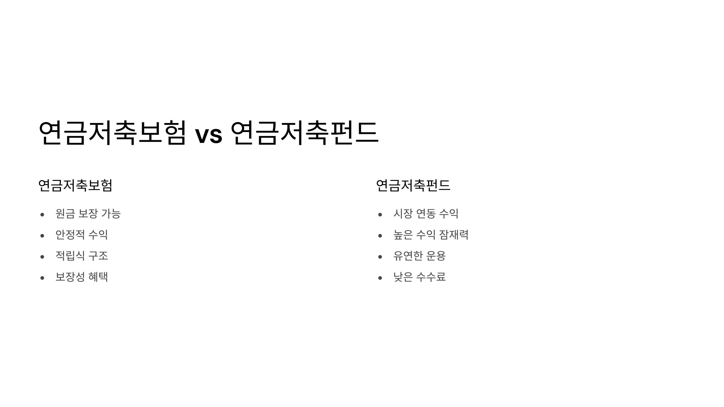 연금저축보험은 ‘안정성’이 가장 큰 장점이에요. 확정금리형 상품도 있고, 수익률이 고정되어 있어 장기적인 예측이 쉬워요. 반면 연금저축펀드는 ‘수익률’이 더 매력적이에요. 시장 흐름에 따라 수익이 높을 수도, 손실이 날 수도 있어요.