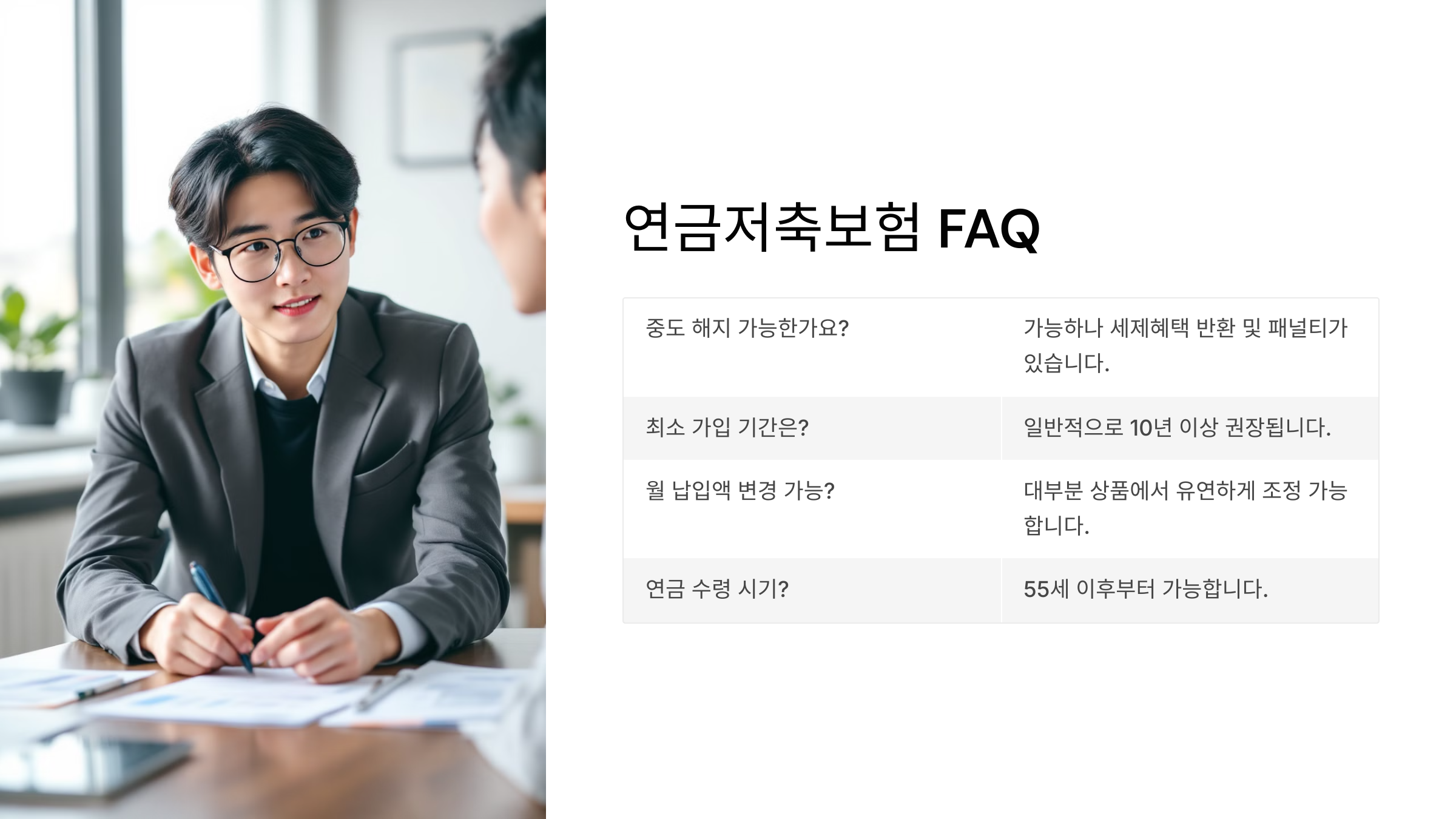 A5. 대부분 상품에서 변경 가능해요. 다만 연금 개시를 늦추면 수령액이 커지고, 앞당기면 줄어드는 구조니 잘 계산해야 해요.