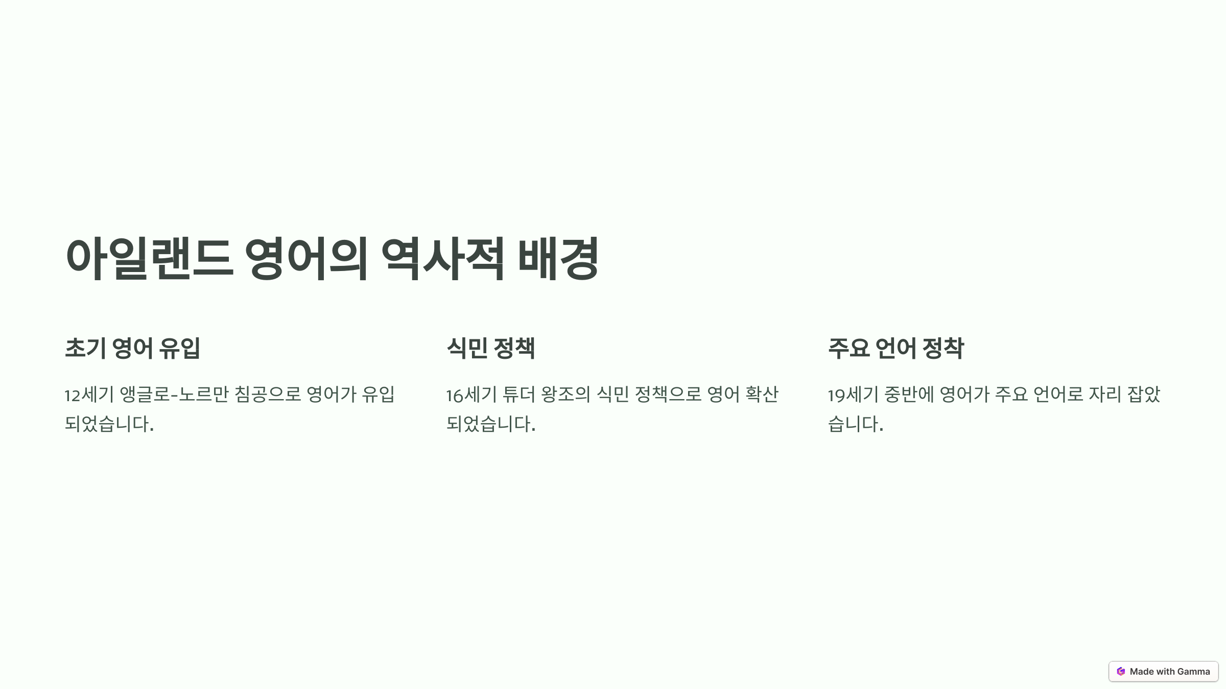 아일랜드 영어의 역사적 배경 아일랜드는 원래 영어를 사용하던 나라가 아니었어요. 아일랜드의 전통적인 언어는 아일랜드어(게일어, Gaelic)로, 영어와 완전히 다른 언어랍니다. 하지만 16세기 이후 영국의 지배가 시작되면서 영어가 점점 확산되었어요.