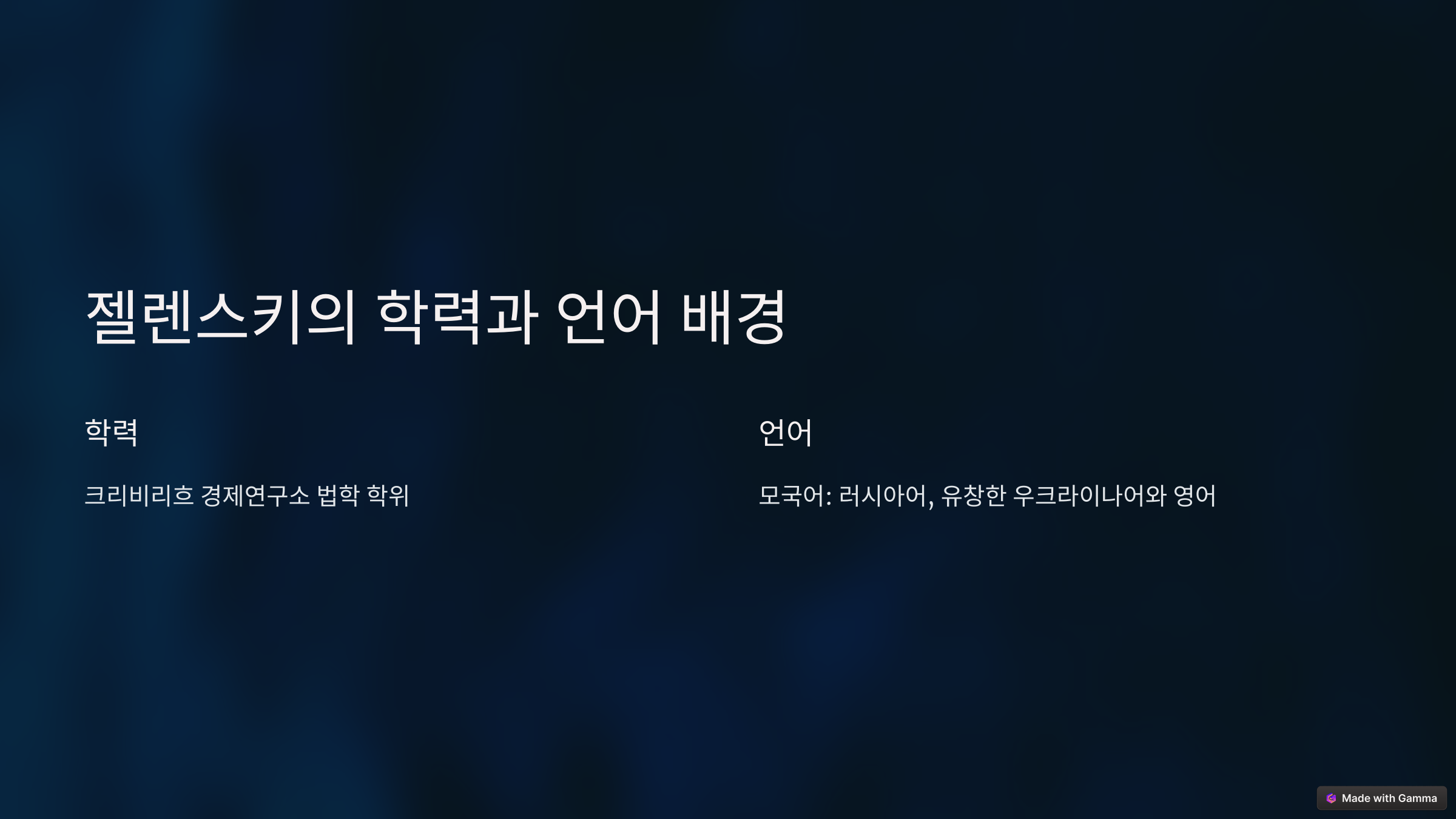 젤렌스키 대통령은 우크라이나에서 태어나 자랐고, 그의 학창 시절과 교육 배경을 보면 외국어 실력과 관련된 단서를 찾을 수 있어요. 그는 1978년 우크라이나 크리비 리흐(Kryvyi Rih)에서 태어났고, 어린 시절 러시아어를 모국어처럼 사용했어요. 😮그의 부모님은 모두 고학력자로, 아버지는 IT와 관련된 학문을 가르치는 대학교 교수였고, 어머니는 엔지니어였어요. 덕분에 젤렌스키는 학업적으로도 우수한 성적을 거두었어요. 그는 키이우 국립 경제대학교(Kyiv National Economic University)에 진학하여 법학을 전공했어요. 하지만 흥미로운 점은 그가 실제로 변호사로 일한 적은 없다는 거예요. 대신 그는 코미디와 연기에 관심을 가지며 연예계에 뛰어들었죠. 🎭