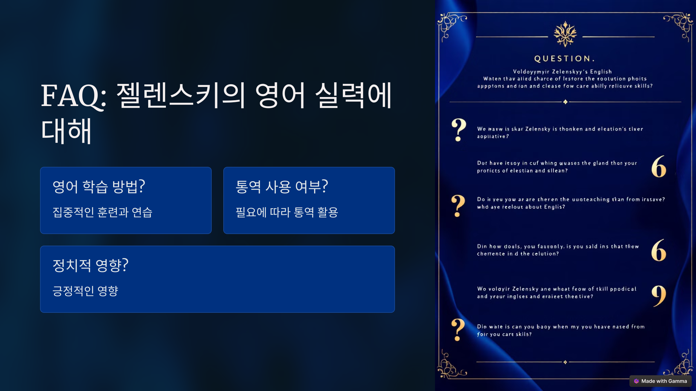 💡 언어학자들과 정치 전문가들은 젤렌스키의 영어 실력을 단순한 유창함의 문제로 보지 않아요. 그가 어떻게 자신의 메시지를 효과적으로 전달하는지에 더 주목하죠.