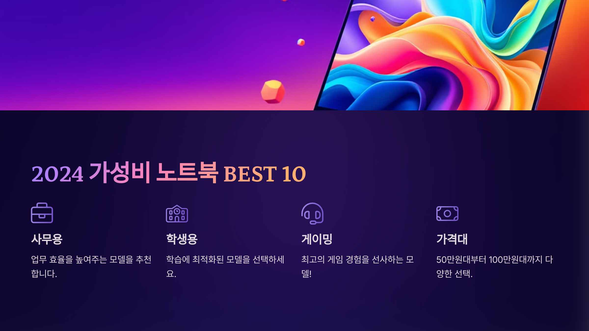 최근에는 다양한 노트북들이 출시되고 있어서, 선택하기가 더 어려워졌죠. 그런데 가성비 좋은 노트북을 찾는 것이 가장 중요해요. 여러분에게 추천할 만한 가성비 최고의 노트북 10개를 소개할게요! 👨💻