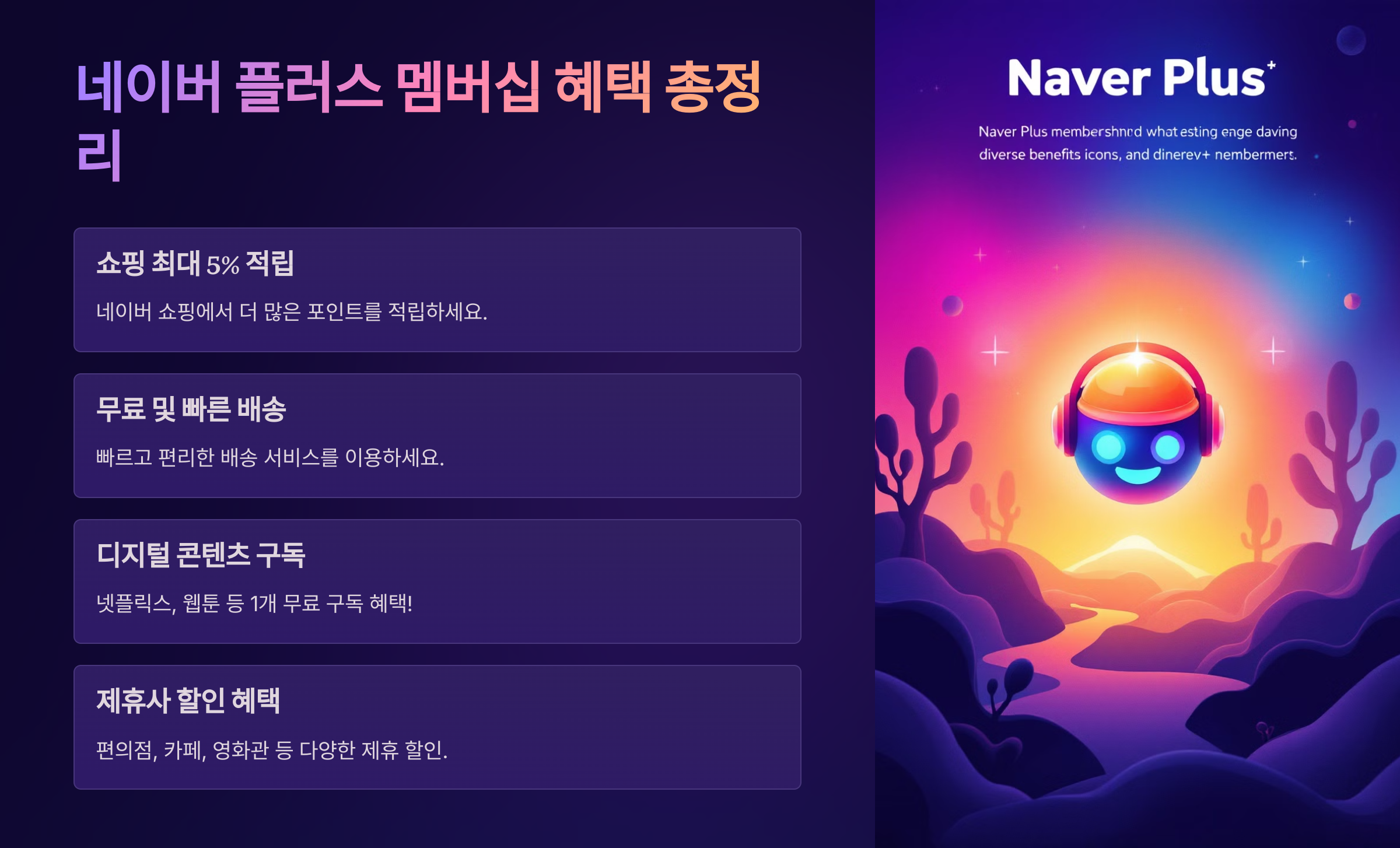 가장 큰 혜택은 네이버 쇼핑에서 구매할 때 할인과 포인트 적립이 가능하다는 점이에요. 플러스 멤버십 회원만 사용할 수 있는 할인 쿠폰도 제공돼서, 쇼핑을 자주 하는 분들에겐 정말 유용하죠. 🛍️