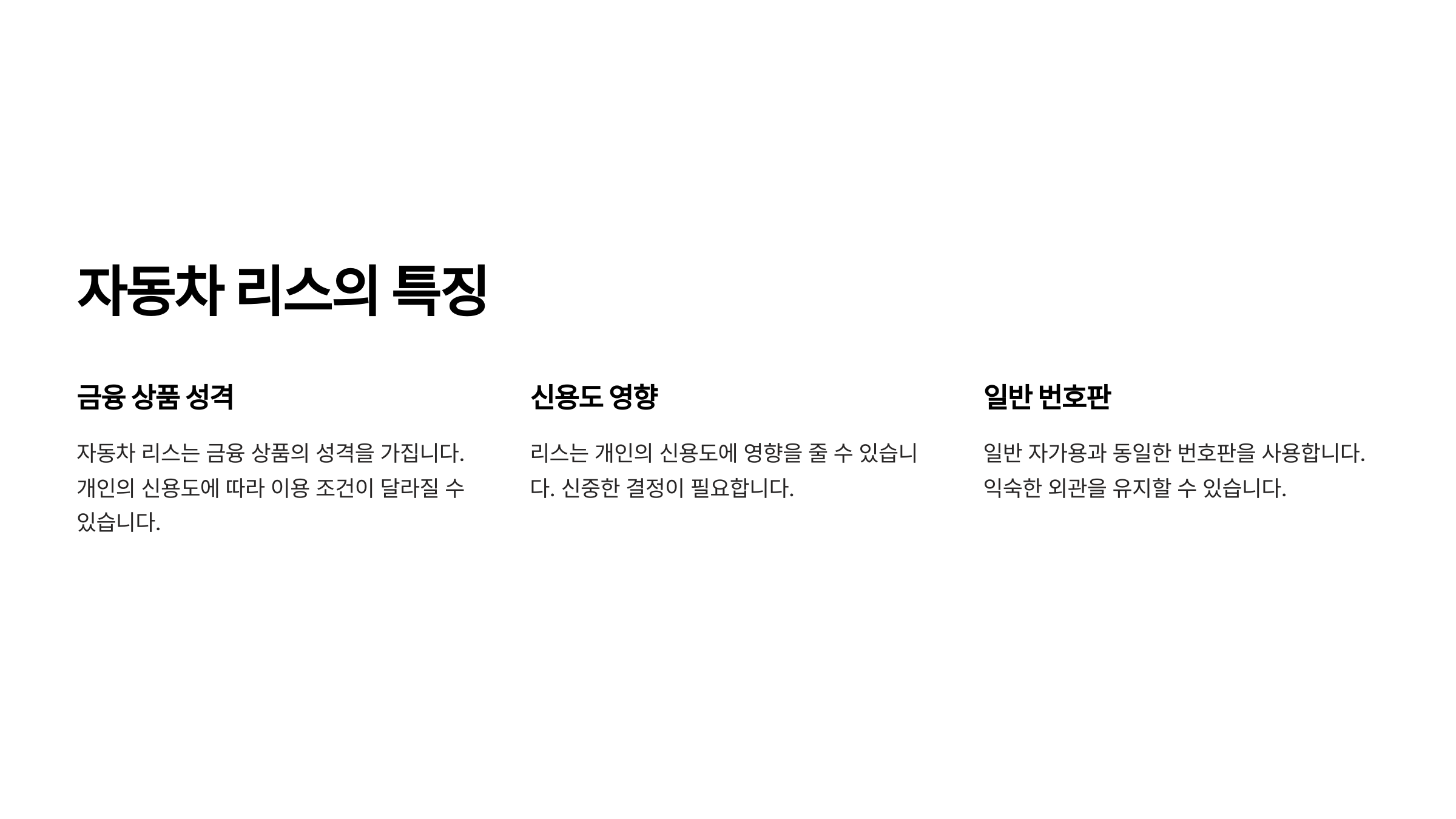 Q3. 자동차 리스 계약은 어떤 조건이 필요한가요?