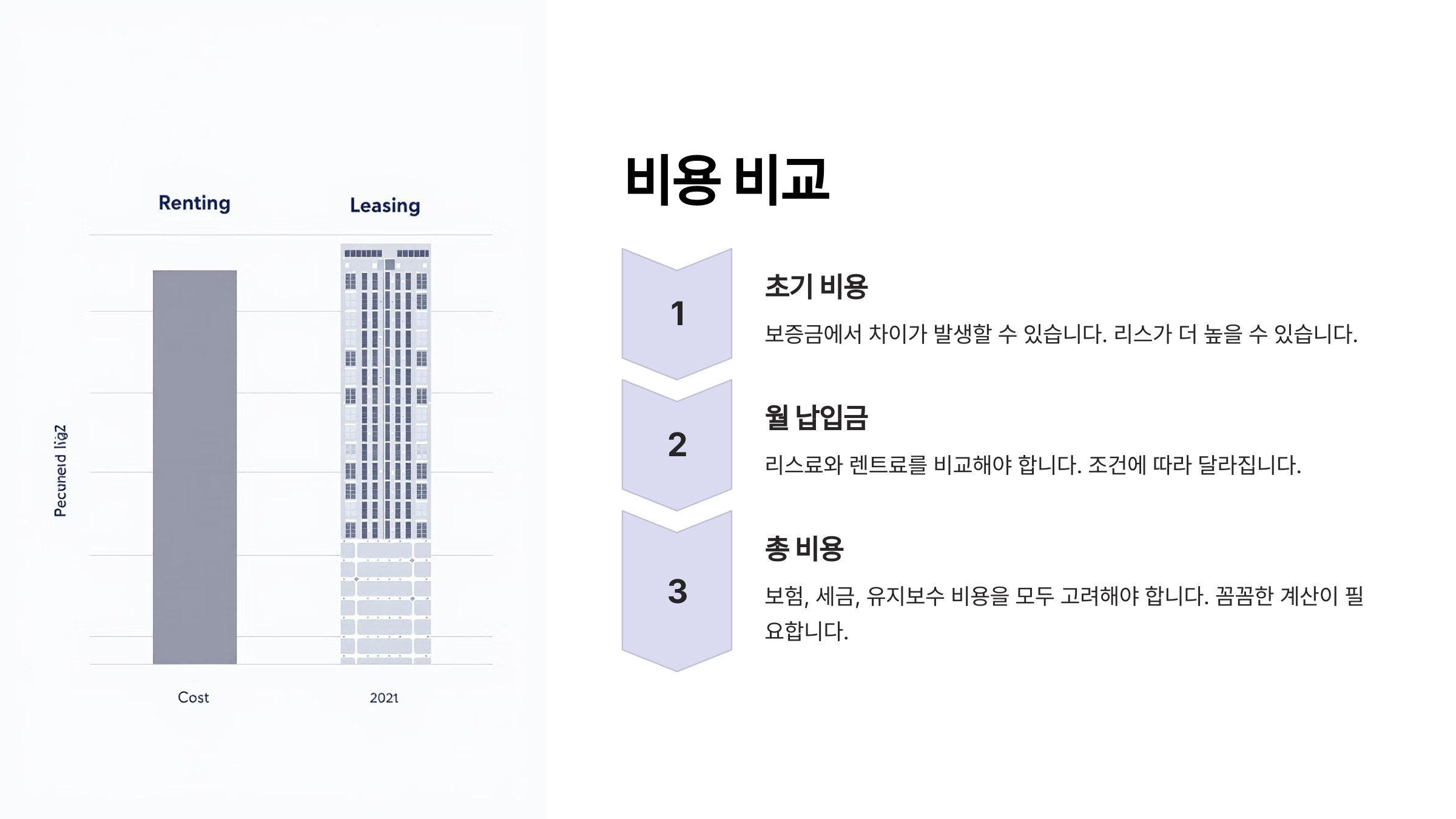 비용 측면에서도 자동차 리스는 월 납입금이 상대적으로 낮고, 초기 비용도 비교적 적어요. 하지만 장기렌트는 월 납입금이 조금 높을 수 있어요. 또한, 리스는 차량의 관리비용을 사용자가 부담해야 할 때가 많아요.