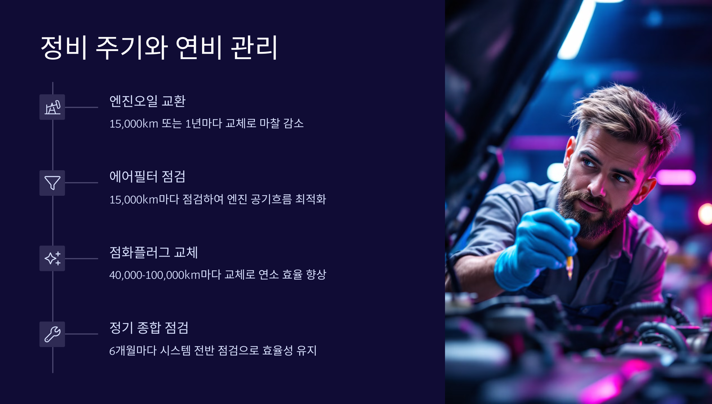 다음 섹션에서는 정비소 가는 타이밍만 잘 잡아도 연비가 올라간다는 🔧 정비 주기와 연비 관리 팁 알려드릴게요!