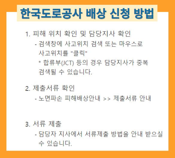 ☞ 배상요청(고속도로< 민자관리 제외>는 한국도로공사, 국도, 시도, 군도 등의 사고는 관할 지자체로 연락)