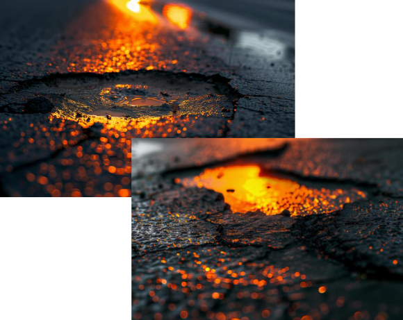포트홀은 운전 시 차량의 타이어, 휠, 서스펜션 등에 큰 충격을 주어 손상을 유발할 수 있습니다. 포트홀은 도로 표면이 불규칙해지며, 빗물이나 눈이 녹은 물이 구멍 안으로 스며들어 도로의 내구성을 더욱 약화시킵니다.