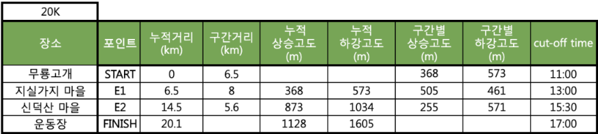 장수 트레일 레이스 20K 대회코스 Races 바로가기