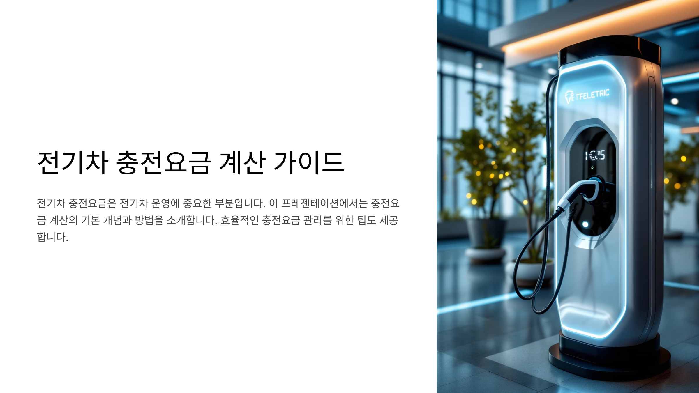 전기차가 충전되는 시간에 따라 요금이 달라지는 곳도 있지만, 대체로 kWh당 요금이 일반적이에요. 요금이 kWh 단위로 부과되면, 차에 얼마큼의 전력을 주입할지에 따라 요금이 달라집니다. 예를 들어, 충전소의 요금이 300원/kWh이고, 배터리가 50% 비어 있는 전기차가 있다면 30kWh 정도의 전력을 채워야 할 거예요. 이때 계산법은 30kWh × 300원 = 9,000원이 되는 거죠.전기차 충전요금 계산 방법