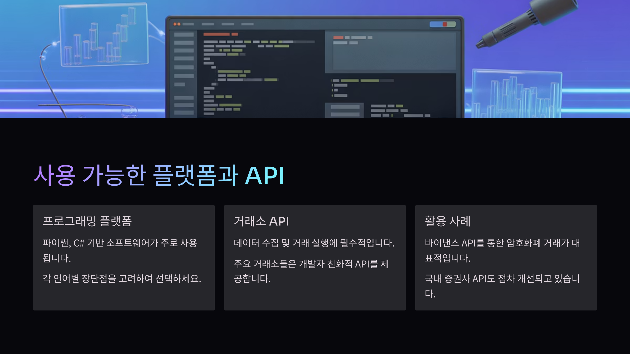✔️ 전략과 궁합 맞는 API를 골라야 해요!🚀 플랫폼과 API 준비 완료!