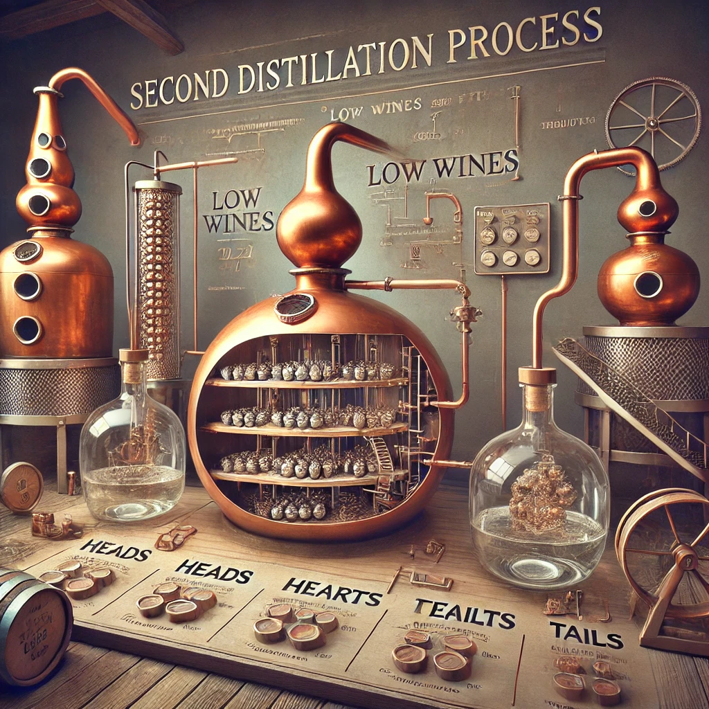 로우 와인은 다시 증류기를 통해 두 번째 증류를 거치며, 이 과정에서 알코올 농도가 높아집니다. 두 번째 증류는 음료의 순도와 맛을 개선하는 데 중요한 역할을 합니다.