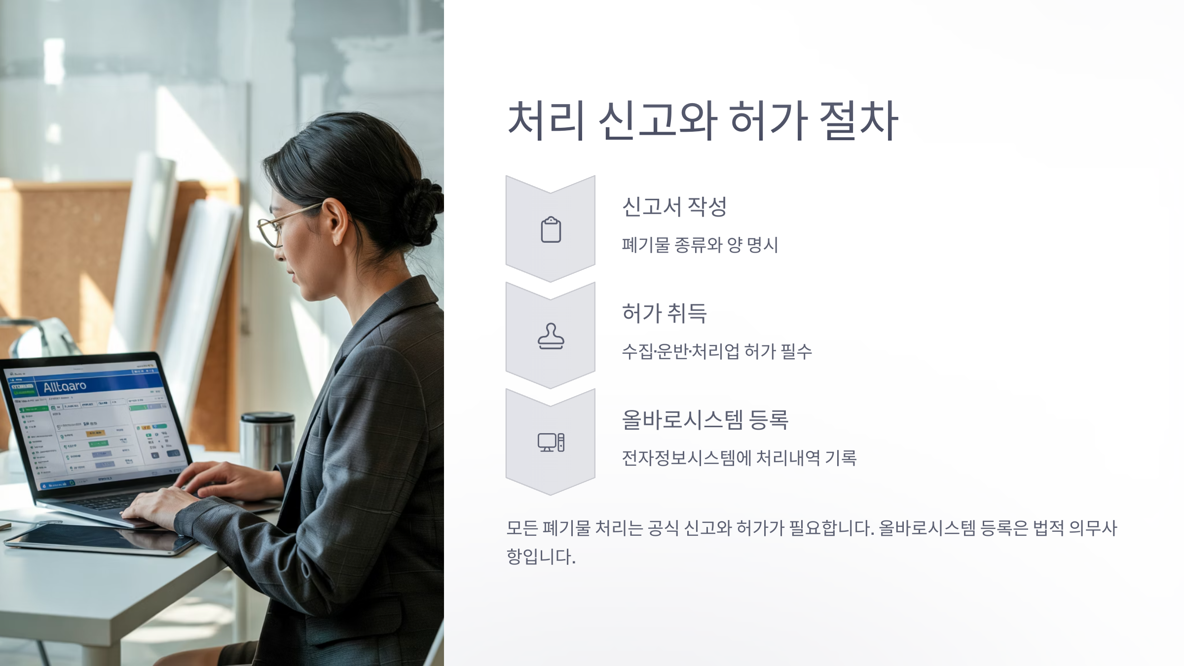 세 번째, 올바로 시스템 등록을 꼼꼼히 체크해야 해요. 시스템에 등록되지 않으면 무허가 처리로 간주되어 벌금이 바로 부과될 수 있답니다. 🖥