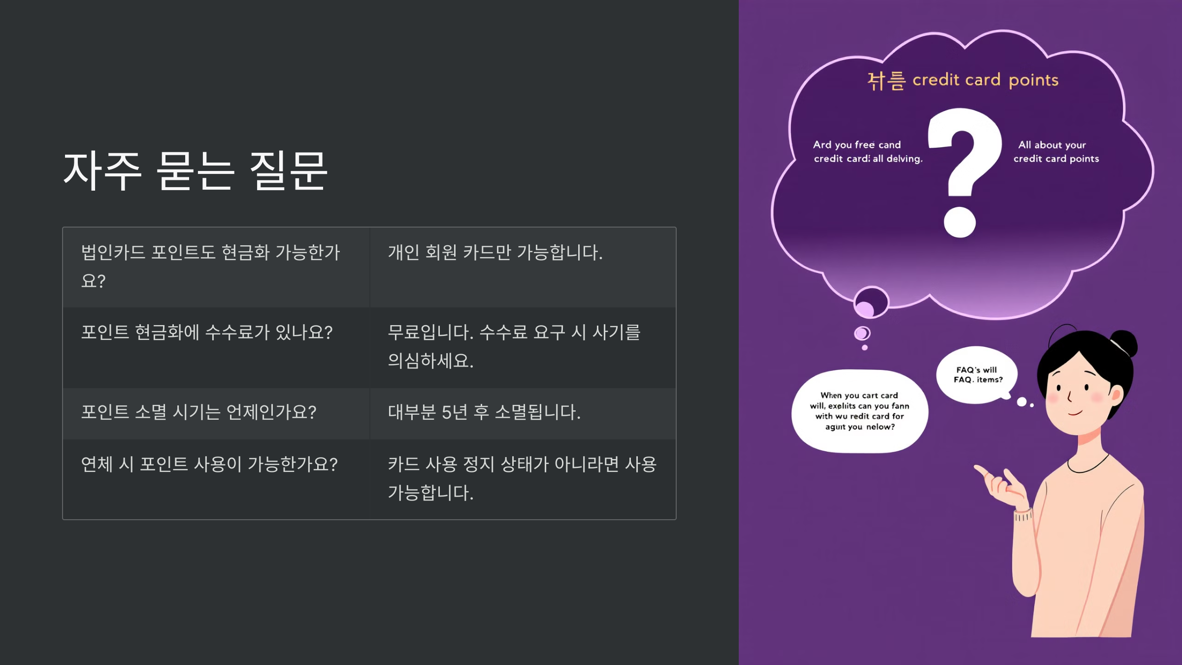 A2. 아니에요. 현대카드 M포인트처럼 일부 포인트는 현금화가 불가능하고 제휴처에서만 사용돼요.