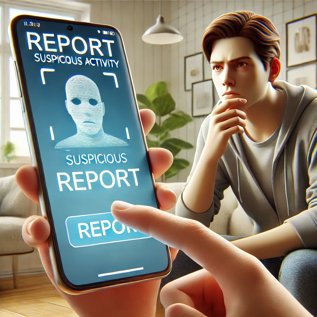 A: 수상한 행동을 발견하면 플랫폼 신고 기능을 사용하고 방을 나가는 것이 가장 안전합니다.