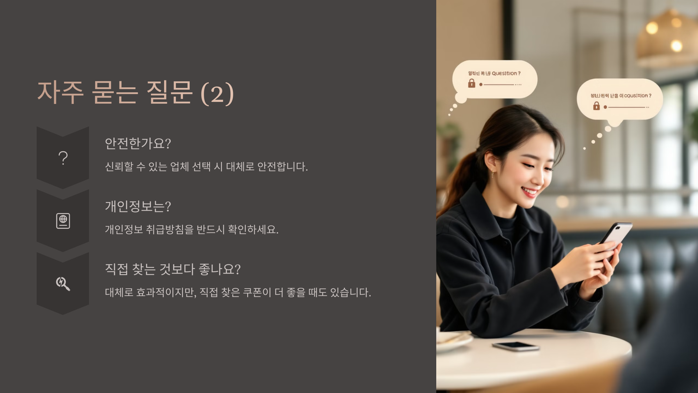 보안 문제 많은 사람들이 자동 쿠폰 사이트의 ‘보안’ 문제를 걱정해요. 결제 직전에 쿠폰이 적용되다 보니, 카드 정보나 주소 같은 민감한 정보가 유출될까봐 걱정하는 거죠.